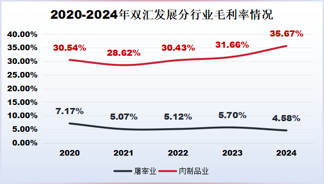 這套模式成效顯著。2024年,雙匯肉制品業務毛利率逆勢攀升至35.67%,不僅遠高于其自身屠宰業務(4.58%),更在行業下行期實現了毛利率的持續提升。肉制品業務成為支撐其高ROE的核心引擎和抵御周期波動的關鍵“阻尼器”。