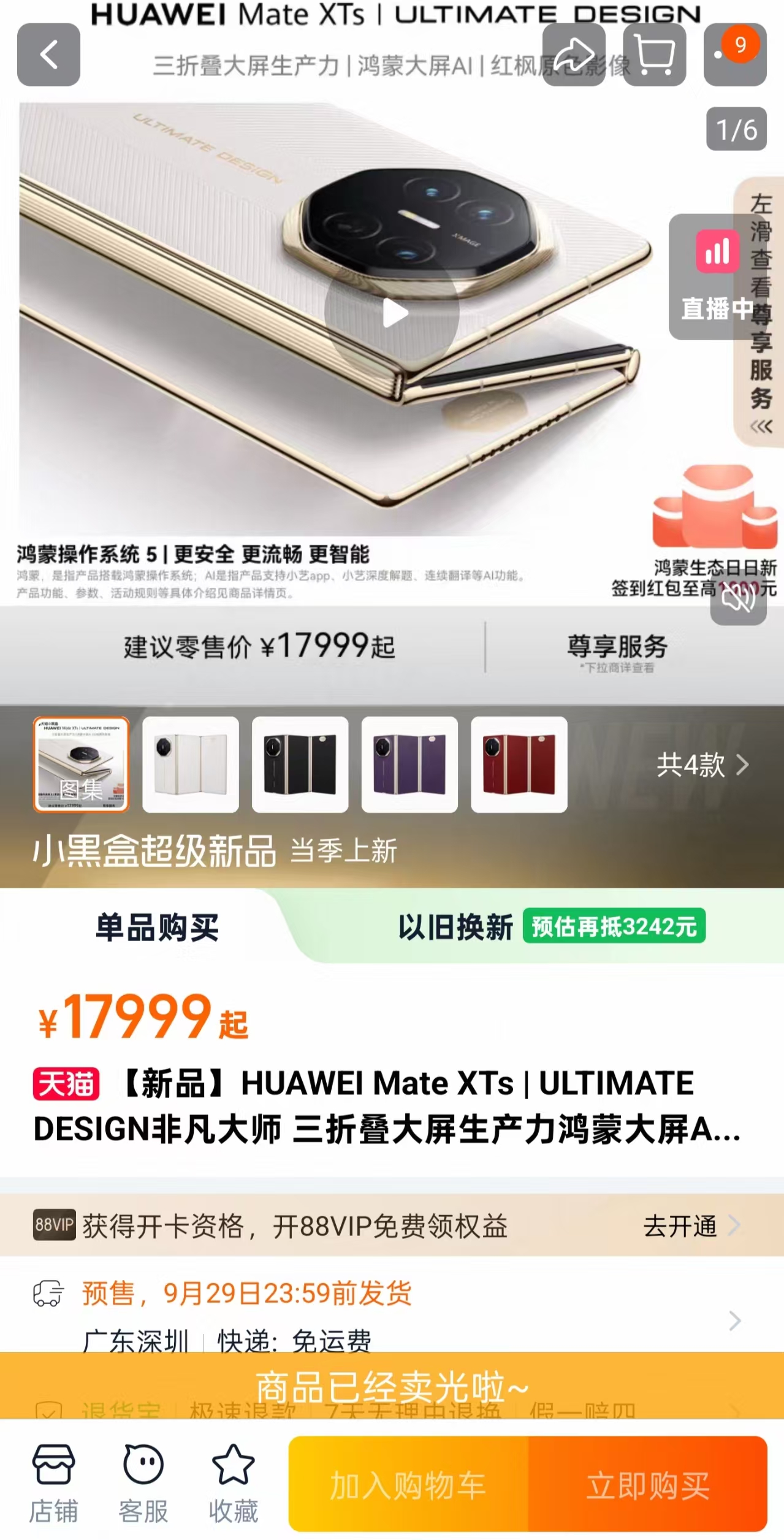 17999元起的華為三折疊MateXTs開售,上線5分鐘被搶空!黃牛加價數千元轉賣